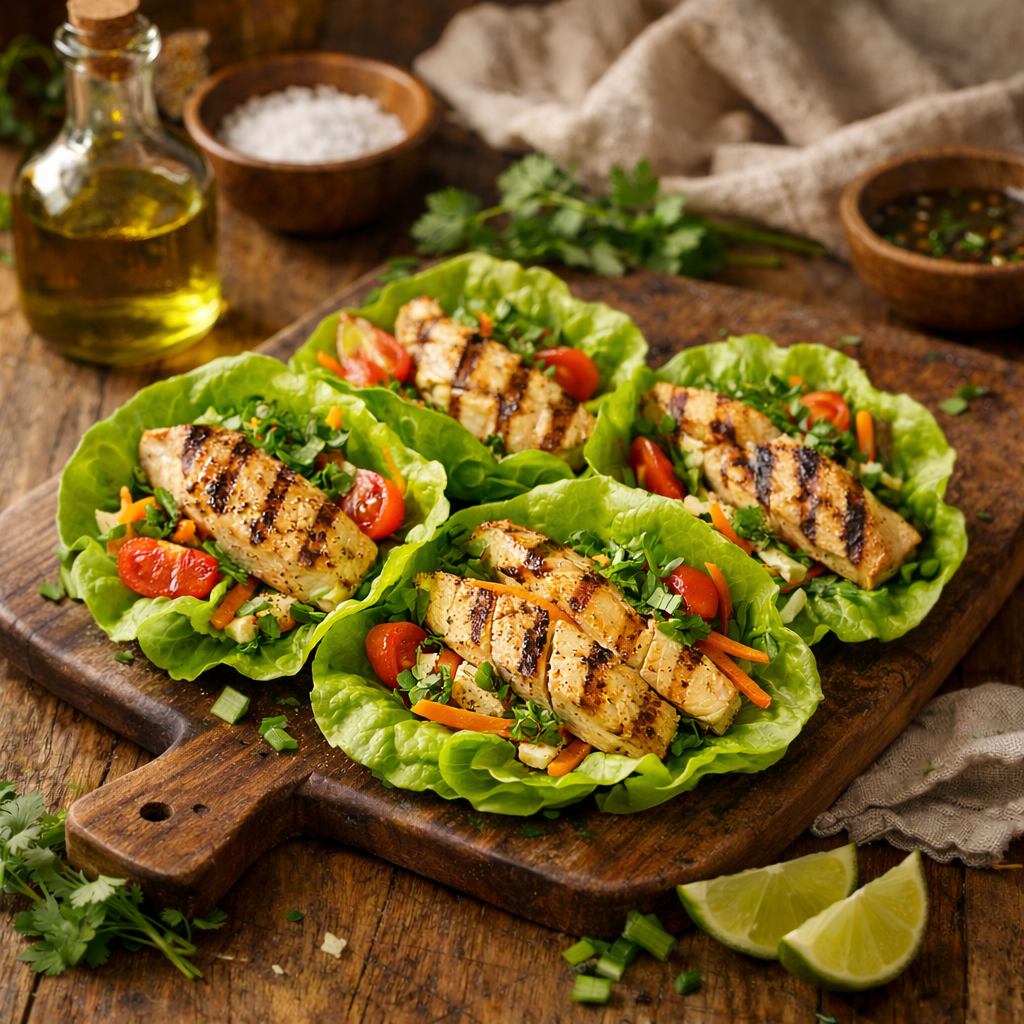 Grab a lettuce leaf, add some sliced chicken, and pile on your favorite toppings. Avocado, tomatoes, red onion, cilantro—whatever sounds good. Drizzle with that quick sauce if you made it.
